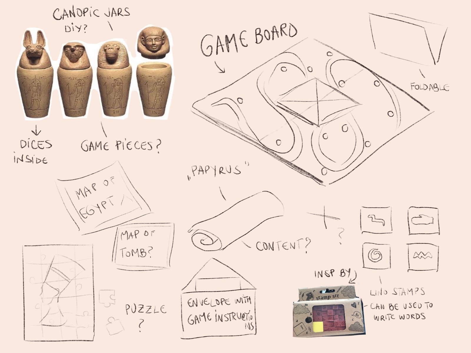 Link to a channel that reviews games. I watched most of these ones about Egyptian related games to get inspiration: https://www.youtube.com/user/thedicetower/search?query=egypt